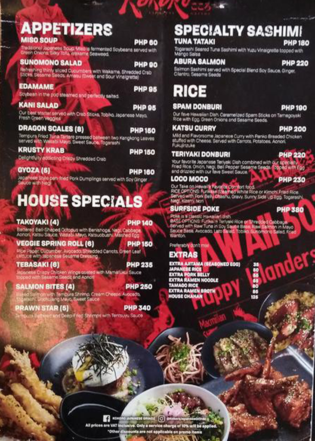 Kokoro Japanese Grindz will give a lasting impression after your first visit. It offers dishes that are a fusion of Japanese-Hawaiian (which makes it standout from other Japanese restaurants). The vibe and ambiance inside the restaurant is so chill with the surf boards and cool wall designs.
